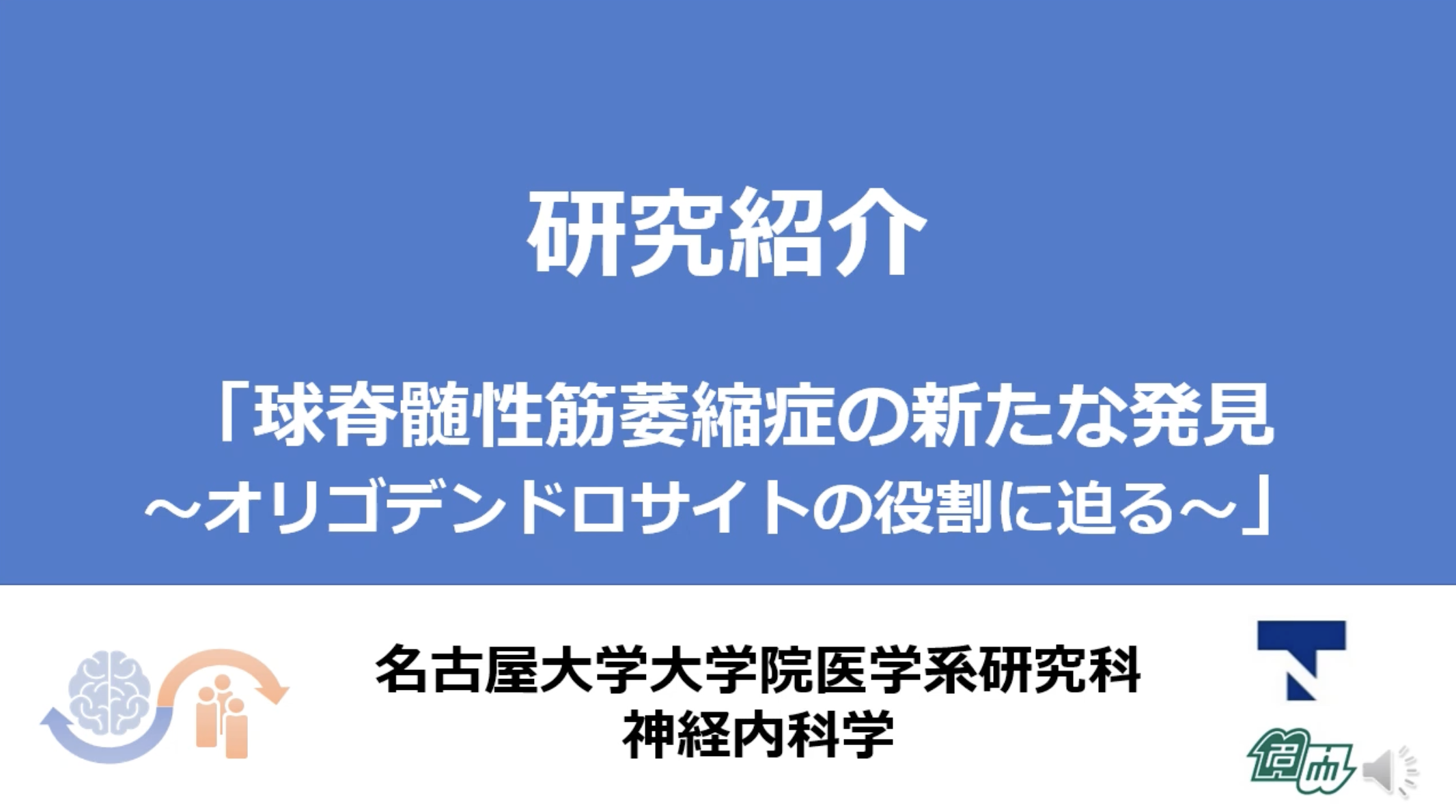 論文報告 【研究紹介】球脊髄性筋萎縮症の新たな発見〜オリゴデンドロサイトの役割に迫る〜 2026.01.03 【研究紹介】球脊髄性筋萎縮症の新たな発見〜オリゴデンドロサイトの役割に迫る〜 球脊髄性筋萎縮症に関するシングルセル解析の成果を論文発表しました。この動画ではその内容を簡単に解説しています。 Post Share Hatena Pocket RSS feedly Pin it 投稿者: Nagoya_Shinkei論文報告コメント: 0 【研究紹介】血清糖鎖が慢性炎症性脱髄性多発神経炎(C... 【研究紹介】本態性振戦の臨床的・神経生理学的特徴