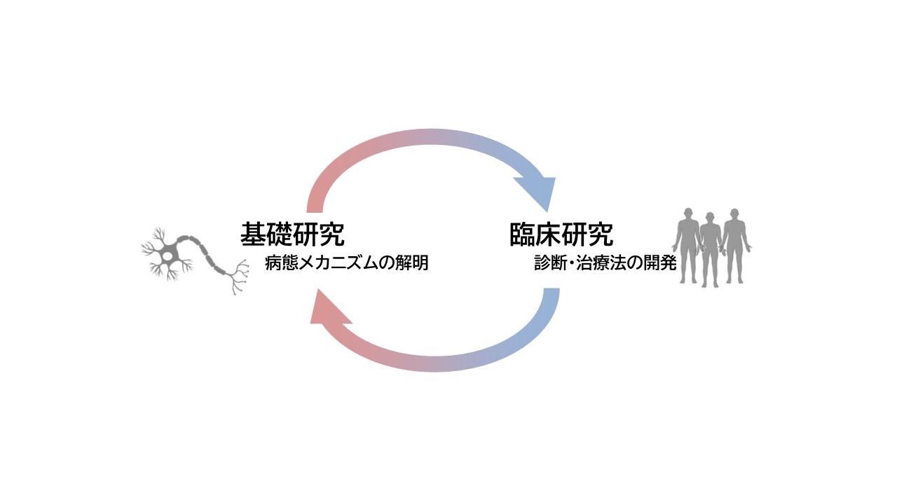 とくにアルツハイマー病や多発性硬化症・重症筋無力症などの免疫性疾患に対する抗体医薬や、運動ニューロン疾患をはじめとする神経筋疾患に対する核酸医薬の開発には目覚ましいものがあり、新しい治療法を開発するための治験も数多く行われています。また、iPS細胞や幹細胞などの細胞治療や遺伝子治療、電気や磁気刺激により神経回路機能を調整するニューロモデュレーション、脳とコンピュータをつなげるブレイン・コンピュータ・インターフェイス(BCI)など、新しい技術の開発が進んでいます。 名古屋大学神経内科学は40年以上の歴史を持つ教室であり、中部・東海地区の脳神経内科の教育・研究・診療の中心的存在を担ってきました。教育については、学部(卒前)ではベーシックな内容から最新の動向も含めて理解して頂けるようなカリキュラムを組んでいます。とくに、臨床実習では患者さんに接しながら診察や検査、治療が学べるよう、学生の主体性を尊重しつつも、的確なフィードバックを提供して、神経内科の魅力を感じていただけるよう努めています。卒後教育においては、専門医として必要な知識や技能を習得して頂いた上で、血管内治療やリハビリ、電気生理学的診断、神経・筋生検、遺伝診療など様々な専門領域を身につけていただけるような教育を実践するとともに、学内外の連携を進めることで、国際性豊かな研究者の育成を目指しています。 研究については、運動ニューロン疾患やパーキンソン病、アルツハイマー病などの神経変性疾患を中心に、末梢神経疾患、筋疾患など幅広い疾患を対象として、細胞・動物モデルを用いた基礎研究と患者さんから得られるデータを用いた臨床研究の両方に取り組んでいます。とくに当教室の強みは、基礎研究で得られた成果を臨床試験で検証するトランスレーショナルリサーチ(TR)と、逆に患者さんの体内で起きていることを生体指標(バイオマーカー)を使って解明し、それを基礎研究に活かすリバースTRを進めていることで、これらの研究を通じて、診断・治療法の社会実装を目指しています。
