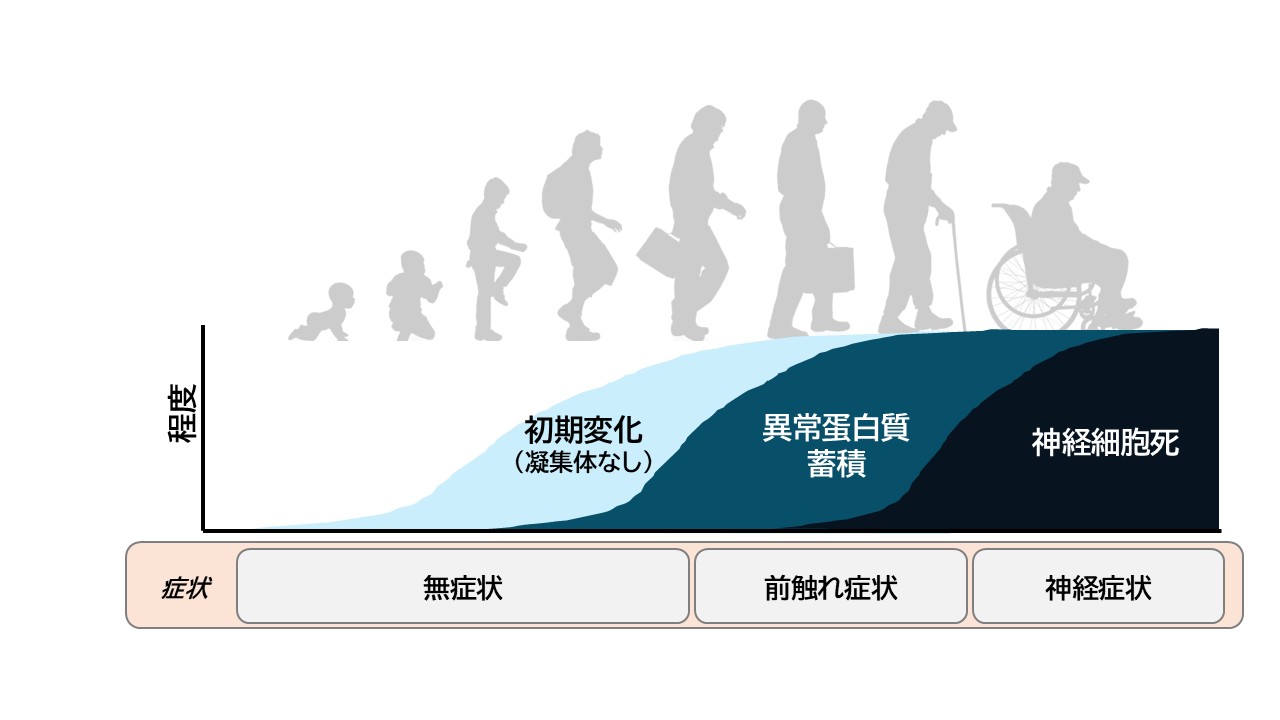 また、神経変性疾患の多くは症状が出現する前から分子レベルでの病態変化が始まっていることが分かっていますので、症状が出現する前の超早期(プレクリニカル期、プロドローマル期)の段階で病気の進行を止める先制治療の開発にも積極的に取り組んでいます。