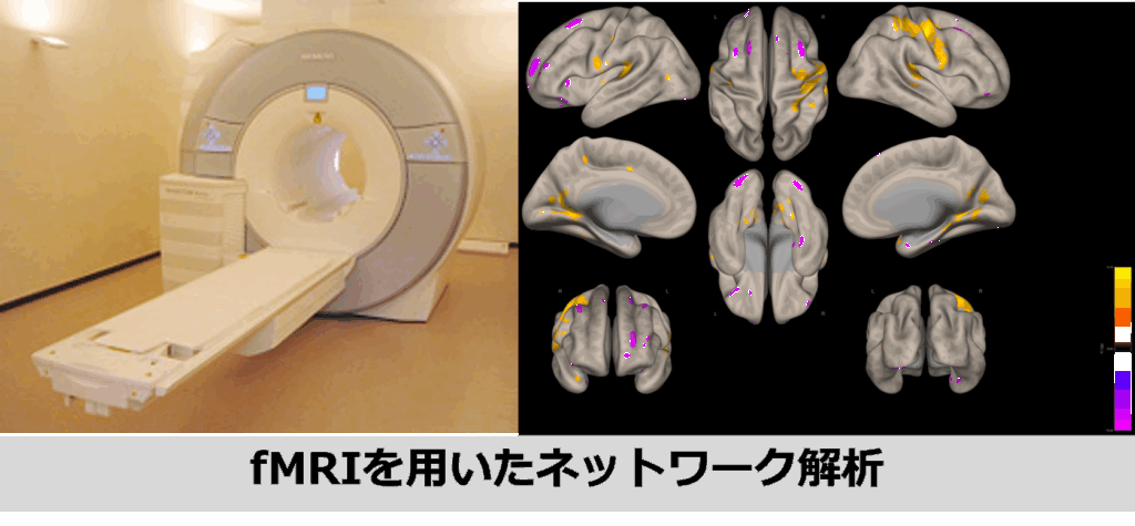 私たちのグループは、機能的MRI(fMRI)を用いて、アルツハイマー型認知症およびプレクリニカル期認知症における脳機能ネットワークの変化を明らかにすることを目的とした研究を行っています。安静時fMRIを用いた大規模ネットワーク解析を通じて、臨床症状出現前の微細な神経基盤の異常を捉え、早期診断や病態理解に貢献することを目指しています。
